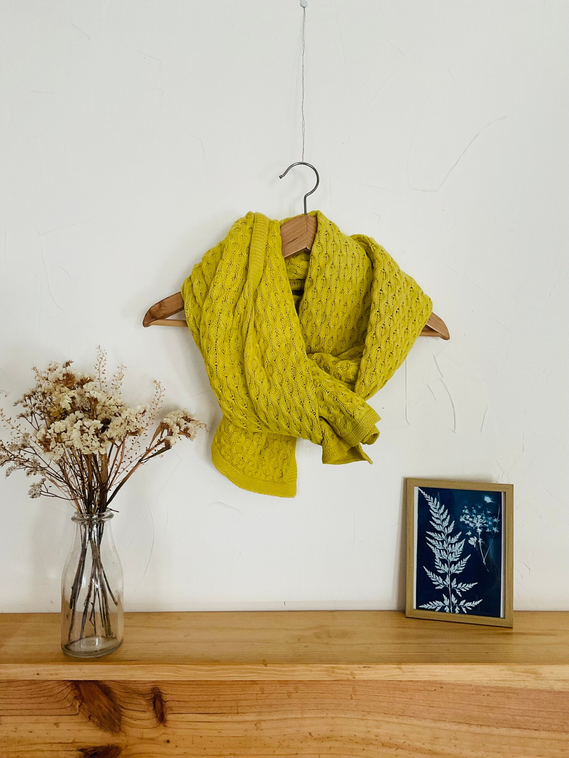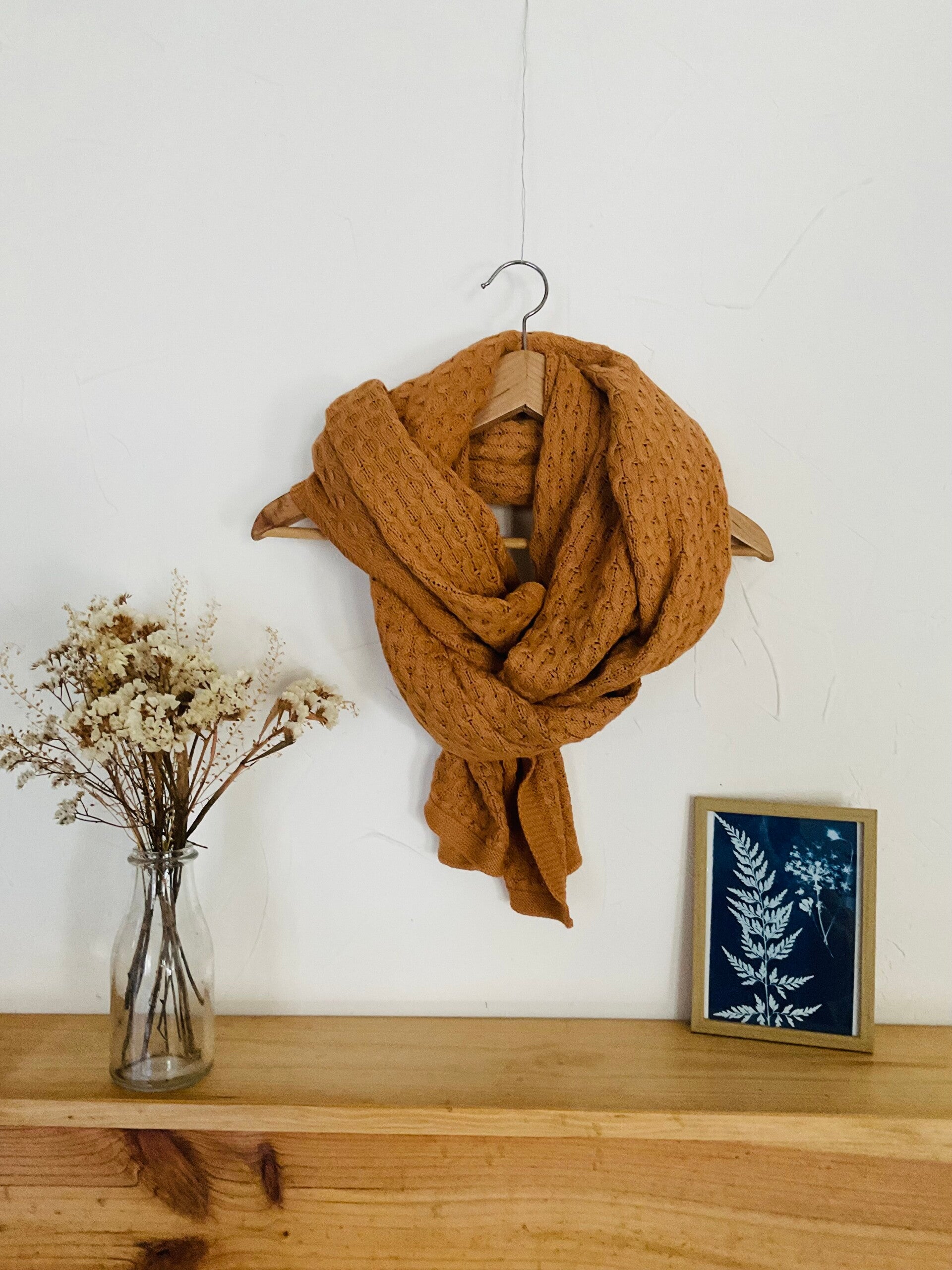 - Echarpe tricotée en nid d'abeille en coton biologique, 180x65 cm, 70€